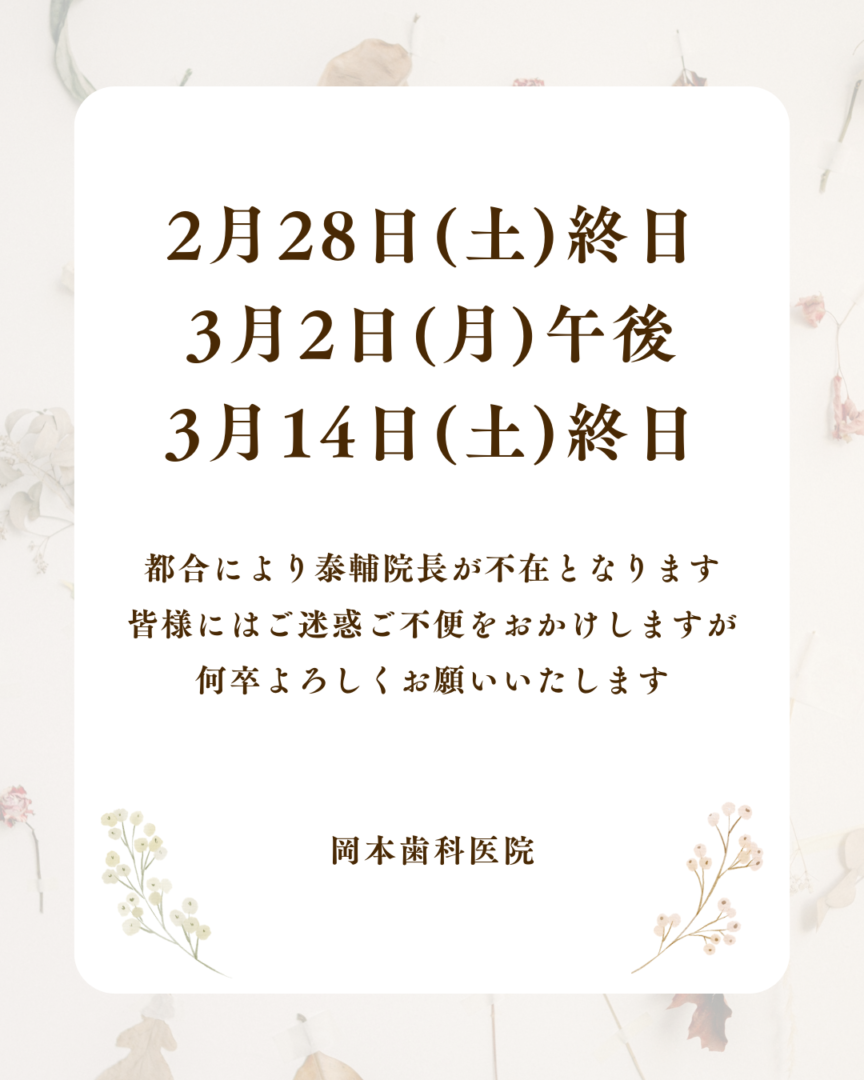 院長不在のお知らせ